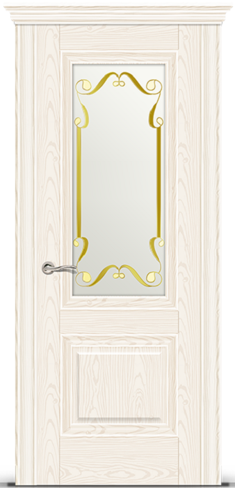 Фабрика СИТИДОРС / Элеганс-1 стекло белое с алмазной гравировкой нежность / цвет белый ясень / материал шпон натуральный