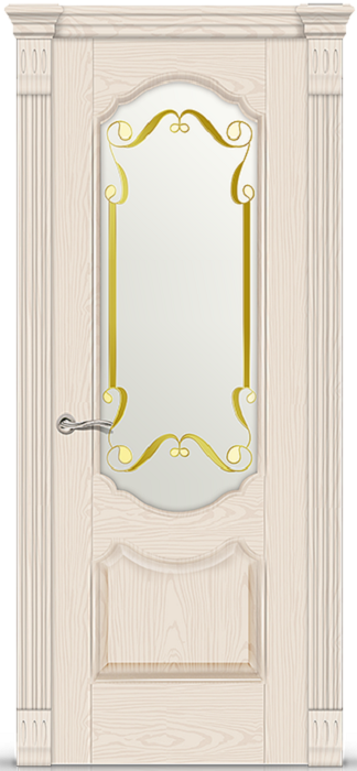 Фабрика СИТИДОРС / Гиацинт стекло белое с алмазной гравировкой нежность / цвет ясень крем / материал шпон натуральный