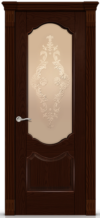 Фабрика СИТИДОРС / Гиацинт стекло бронзовое с алмазной гравировкой кружево / цвет шоколадный ясень / материал шпон натуральный