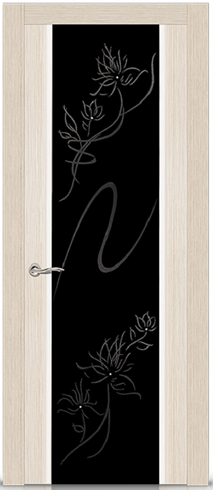 Фабрика СИТИДОРС / Бриллиант стекло черное триплекс c двухсторонним худ. рисунком и кристаллами swarovski / цвет беленый дуб / материал шпон натуральный